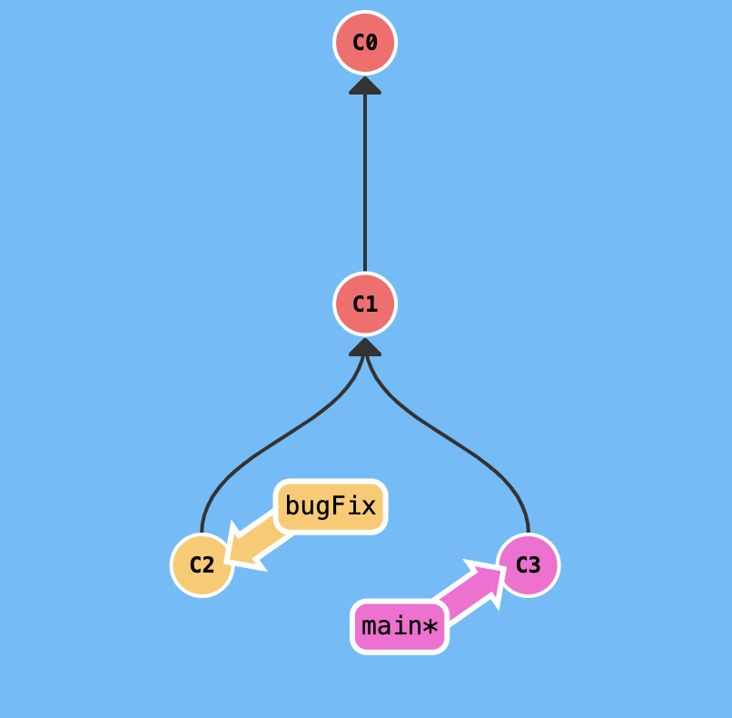 bugFix와 main이란 브랜치가 있고 현재 main브랜치를 가리키고 있다(main옆에 *이 붙어있다)