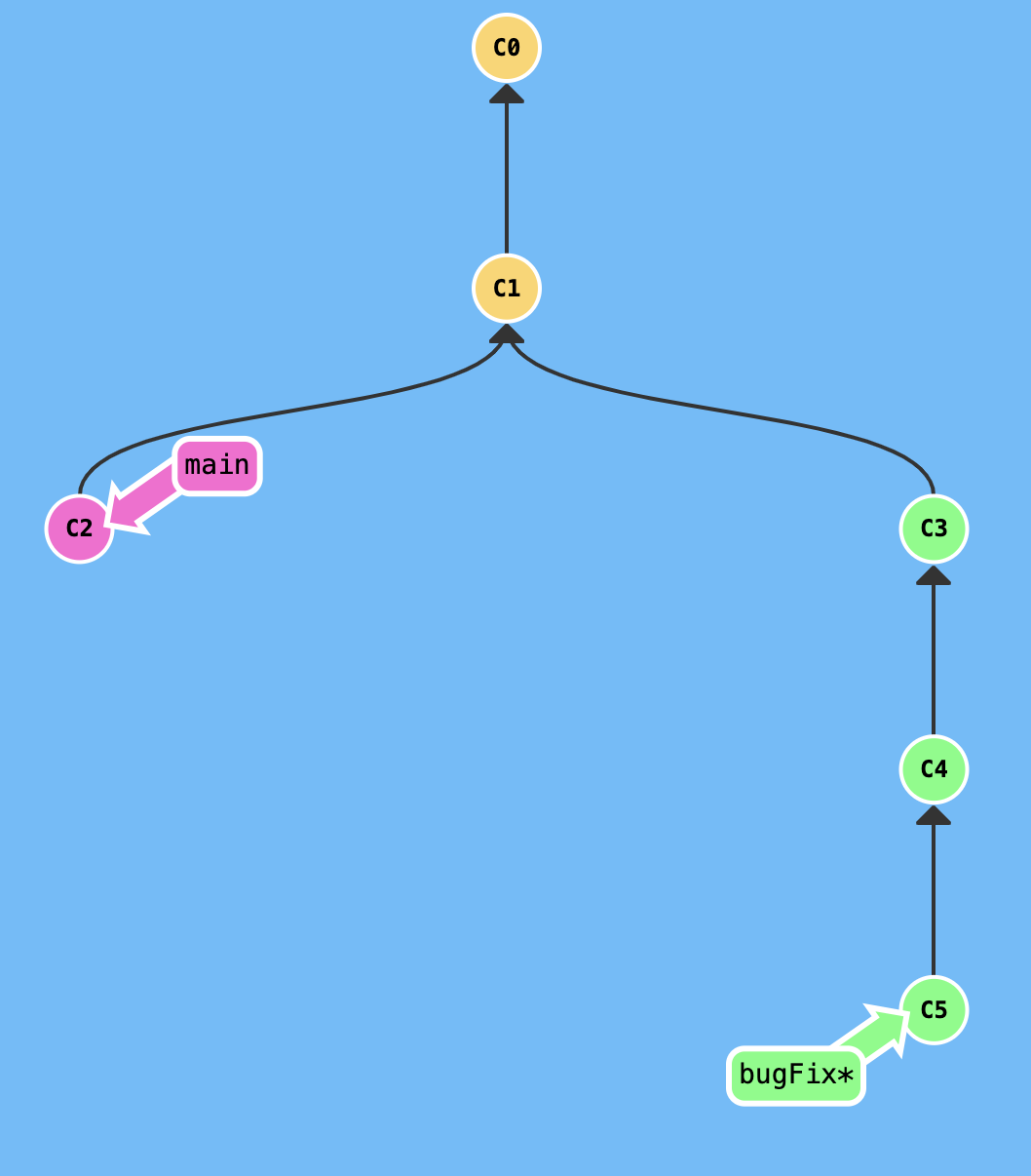 HEAD를 bugFix에서 분리하고 그 커밋에 붙이기